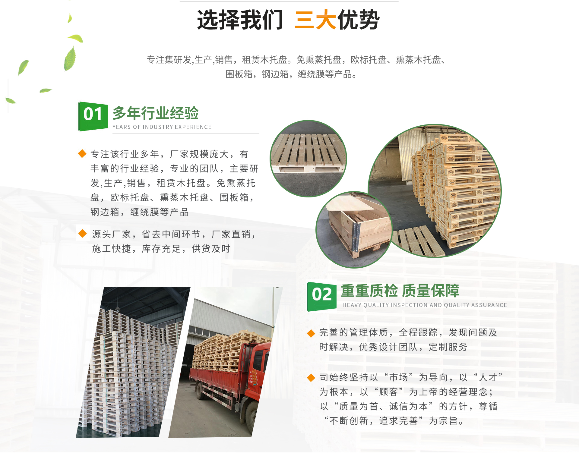 蕪湖奔騰包裝股份有限公司坐落于滬渝高速灣沚出口處3公里,距離灣沚高鐵站6公里,蕪宣客運(yùn)機(jī)場(chǎng)5公里,交通十分便利。我公司是專注集木托盤研發(fā),生產(chǎn),銷售,租賃的綜合服務(wù)商。本公司生產(chǎn)的免熏蒸托盤,歐標(biāo)托盤、熏蒸木托盤、圍板箱,鋼邊箱等產(chǎn)品遠(yuǎn)銷海內(nèi)外。公司本著“以質(zhì)量求生存,以信譽(yù)謀發(fā)展,以服務(wù)拓出路”的服務(wù)經(jīng)營理念;重視產(chǎn)品質(zhì)量和服務(wù),為用戶著想。根據(jù)客戶需求,及時(shí)送貨。公司始終堅(jiān)持以“市場(chǎng)”為導(dǎo)向,以“人才”為根本,以“顧客”為上帝的經(jīng)營理念;以“質(zhì)量為首、誠信為本”的方針,尊循“不斷創(chuàng)新,追求完善”為宗旨。本著生產(chǎn)廠家,減少中間流通環(huán)節(jié)的原則,讓利于每位客戶朋友。我們的產(chǎn)品價(jià)格合理,質(zhì)量過硬,真誠歡迎各方客商前來業(yè)務(wù)洽談與合作。